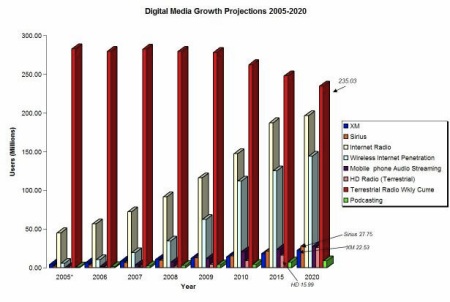 Certainly Internet-delivered audio streaming and audio programming (not to mention, video, text, etc.) is gaining ground on old-school delivery technologies. But a 10-year countdown on radio transmission strikes me as a bit fast. This is a generational change, a slow process. Consider the strikes against this prediction: